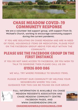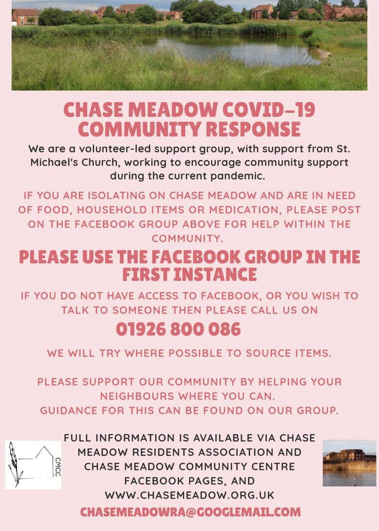 If you are isolating on Chase Meadow and are in need of food, household items or medication, please post on our Facebook group for help within the community.